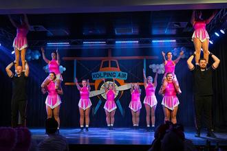 Pünktlich hob der Flug der Kolping Air am Römerporto ab und begab sich auf den Flug zum Zuckerpuppenhut in Rio de Rheinbrohlo. Viele erschienen in kreativen und dem Motto angepassten Kostümen und sorgten bereits zum Beginn für eine ausgelassene Stimmung. Das Bordprogramm startete mit dem Besuch des Funkencorps Blau-Gold Leubsdorf 1985 e. V., gefolgt von „Ne komische Hellije“ alias Peter Kolb, dieser trat den Angriff auf die Lachmuskeln des Publikums an.