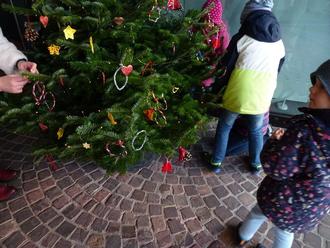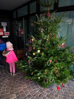 Am 23.11.22 wurden wir eingeladen den Baum der Sparkasse Dierdorf zu schmücken. Mit einer Kiste voll selbstgebasteltem Baumschmuck trafen wir uns um 15 Uhr vor der Filiale. Eifrig schmückten die Eulennestkinder mit etwas Unterstützung den Baum.
