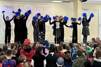 Nach der Generalsanierung der Grundschule konnten die farbenfroh verkleideten kleinen Narren endlich wieder im Foyer der Schule ihre Karnevalsparty feiern. Viele Showacts, Tänze und sogar ein Sketch der Lehrerinnen und Lehrer sorgten für ein buntes Programm und einen abwechslungsreichen Vormittag.