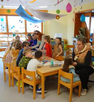 Auch in den Gruppenräumen gab es einiges zu entdecken: In der blauen Gruppe konnten sich die Kinder fantasievoll schminken lassen, während in der grünen Gruppe ein aufregender Parcours für Bewegung sorgte. Die gelbe Gruppe bot verschiedene Spiele an, und in der Gruppe Orange wurde mit Begeisterung das beliebte Spiel „Die Reise nach Jerusalem“ gespielt.