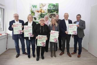 Präsentieren das Programm der 1. Wir Westerwälder LandFrauen-Messe in Puderbach (v.l.n.r.): Dr. Peter Enders ( Landrat Kreis Altenkirchen), Katja Milad ( Vorsitzende LandFrauenverband Neuwied), Gudrun Franz-Greis (Vorsitzende LandFrauenverband Westerwald), Heike Kuchhäuser ( stellvertretende Vorsitzende LandFrauenverband Frischer Wind e.V. Altenkirchen) Sandra Köster ( Wir Westerwälder), Jörg Hohenadl ( Naturgenuss Partner / Wifö Kreis Neuwied), Achim Hallerbach ( Landrat Kreis Neuwied) und Achim Schwickert ( Landrat Westerwaldkreis).
