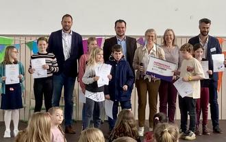 Während einer kleinen Feierstunde wurde der Schule seitens der Aufsichts- und Dienstleistungsdirektion Koblenz sowie des Landessportbundes durch Frau Katrin Riebke das Zertifikat „Schule für Bewegung, Spiel und Sport“ verliehen. An der Feierstunde nahmen auch der neue Schulrat Jens Fleck sowie Verbandsbürgermeister Manuel Seiler teil. Die Klasse 1c trat mit den Schulneulingen des nächsten Jahres auf. In einem gemeinsamen Projekt hatten sie unter Anleitung von Musikschullehrerin Sylvia Graß aus Großmaischeid verschiedene Tänze eingeübt. Auch die Einradgruppe der Ganztagsschule zeigte ihr Können. Für das leibliche Wohl war ebenfalls gesorgt, dank großzügiger Kuchenspenden sowie tatkräftiger Unterstützung seitens der Elternschaft war es eine gelungene Veranstaltung.