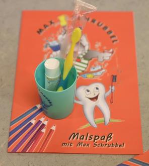 Zum Schluss hat jedes Kind eine Zahnbürste, Zahnpasta und einen Zahnputzbecher geschenkt bekommen.