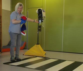 Nacheinander übten wir: Am Zebrastreifen zuerst nach links, rechts, links schauen und den Autofahrern in die Augen sehen.