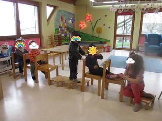 Aus Stühlen und Hockern wurde mal ein Bus oder eine Eisenbahn und das andere Mal ein Kletterparcours.
