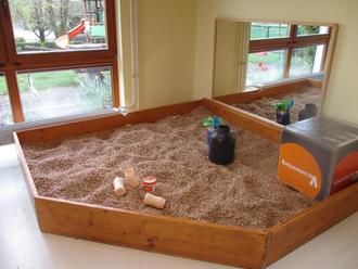 Der absolute Favorit war (und ist nach wie vor) der Pelletskasten. Eine Art Sandkasten mit Holzpellets gefüllt. Dort wurde fleißig gebuddelt, die Pellets in verschiedene Behälter geschüttet und umgeschüttet, sich einfach hineingelegt und sogar „gekocht“. Die Erzieher durften immer wieder leckere Spezialitäten der Kinder probieren!