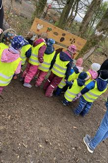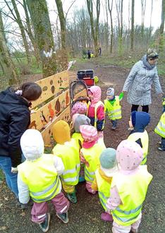 Am Donnerstag, 28.03.2024 machten sich die Holzbachfrösche im Wald auf die Suche nach ihrem selbstgebastelten Osternest, um zu schauen, ob der Osterhase vielleicht etwas für sie versteckt hat. Bei einer tollen Schnitzeljagd warteten viele verschiedene Rätsel auf die Kinder, die bewältigt werden mussten, um an das Osternest heranzukommen. Nachdem alle Rätsel gelöst waren, wurden die Kinder mit ihrem Osternest belohnt, in dem sich für jeden eine personalisierte Tasse mit dem Gruppenlogo, dem Kita Logo und dem Namen des Kindes befand. Außerdem konnten sich die Kinder noch mit Kuchen und erfrischenden Getränken stärken.