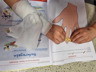 Zur Übung wurden Pflaster geklebt und Verbände angelegt.