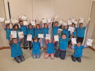 Zum Abschluss des Kurses gab es für jedes Kind eine Urkunde und ein Verbandpäckchen zum Weiterüben für zu Hause.