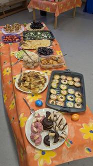 Im Laufe des Morgens kamen viele Kinder immer wieder zum Buffet, um sich an der reichhaltigen Auswahl zu bedienen. Es war ein rundum gelungenes Ereignis, das für alle ein fröhliches und genussvolles Erlebnis war.