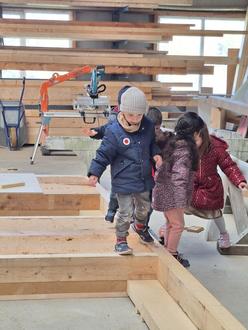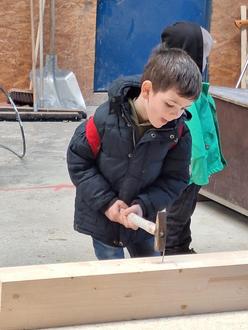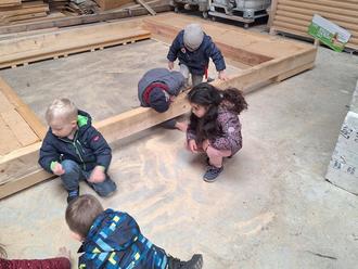 Also machen wir uns mit einigen Kindern auf den Weg vom Eulennest zur Zimmerei.