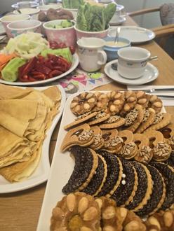 An einem reich gedeckten Tisch, mit den verschiedensten Köstlichkeiten aus fünf Ländern, haben wir einen gemütlichen Vormittag verbracht. In dieser Atmosphäre waren sehr persönliche Gespräche möglich. Wir konnten einen Blick in das Leben der Anderen werfen. Dafür allen einen herzlichen Dank.