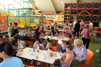 Im Piratenland angekommen, hat es nicht lange gedauert und alle Kinder sind losgestürmt. Es wurde gerutscht, geklettert, getobt und vor allem viel gelacht. Die Kinder konnten sich frei bewegen und völlig ausgelassen spielen und Spaß haben. Zum Abschluss eines schönen Vormittags gab es für alle Pizza zum Mittagessen.