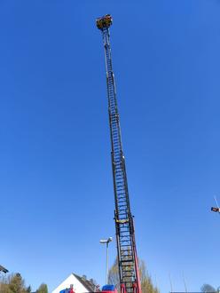 Anschließend haben wir uns in zwei Gruppen aufgeteilt. Die eine Gruppe hat eine ausführliche Erklärung erhalten, wie so ein Feuerwehrauto von innen aussieht und was sich alles darin befindet, und die andere Gruppe durfte mit der Drehleiter hoch hinaus fahren und sich Dierdorf von oben anschauen. Danach wurden die Gruppen getauscht.
