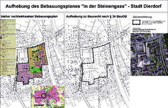 Der Stadtrat der Stadt Dierdorf hat in seiner öffentlichen Sitzung am 10.05.2023 gemäß § 1 (3) i.V.m. § 2 Abs. (1) BauGB die Aufhebung des Bebauungsplanes „In der Steinengass“ beschlossen.