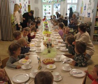 Der Frühling bringt die Osterzeit in den Kindergarten. Während der Fastenzeit haben wir wöchentlich Jesusgeschichten gelesen, in der Karwoche täglich, um die Bedeutung dieser Zeit zu vermitteln. Besonders schön war das Schmücken der Palmzweige, verbunden mit der Geschichte vom Einzug Jesu in Jerusalem und dem Passahfest. Gemeinsam haben wir auch gebacken: Hasen, Lämmer und frisches Brot. Nach der Geschichte von Kreuzigung und Auferstehung haben wir Kresse gesät, um die Auferstehung sichtbar zu machen. Am Gründonnerstag feierten wir eine Andacht mit U3- und Ü3-Kindern, um die Bedeutung des Passahfestes zu reflektieren. Abschließend haben wir ein gemeinsames Frühstück mit Brot und Traubensaft genossen, um die Traditionen zu erleben und zu verstehen.