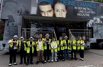 Die zweite Gruppe besuchte parallel den ME-InfoTruck, wo sie an Mitmachstationen Berufe aus der Metall- und Elektrobranche praxisnah erleben konnte.