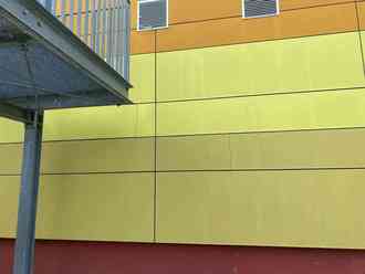 Aktuell wurde unter dem Einsatz von roher Gewalt mutwillig eine Beschädigung an der Fassadenverkleidung herbeigeführt – konkret wurden etliche Fassadenplatten zu Bruch befördert. Die Zerstörung der massiven Fassadenplatten zeugt von einem brachialen Kraftaufwand.