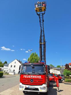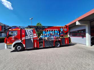 Ein besonderes Highlight wartete am Ende des Besuchs: Die Kinder durften mit der Drehleiter hoch hinaus – ein Erlebnis, das sicher noch lange in Erinnerung bleibt! Mutig genossen die Schukis den Blick über Dierdorf von oben.
