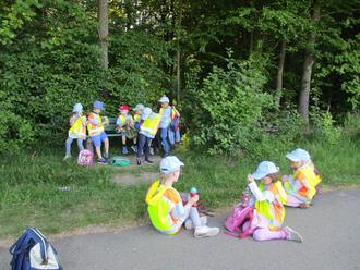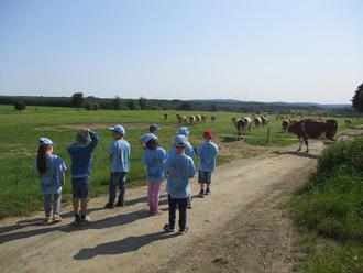 Wir wurden von Familie Theis aus Elgert eingeladen, am 05.06. mit den Schukis auf ihren Bauernhof zu kommen. Diese Einladung nahmen wir natürlich gerne an. Pünktlich trafen wir uns in der Kita und jeder Schuki hatte seinen Rucksack mit Proviant dabei, denn wir wollten uns zu Fuß auf den Weg nach Elgert machen. Unterwegs haben wir Kornfelder, Blumen, Kühe und Tierspuren gesehen.