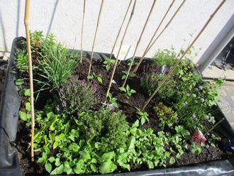 Nach den Osterferien sind dann die ersten Kräuter gepflanzt worden. Vor der Elefantengruppe ist ein wahres Duftbeet entstanden.