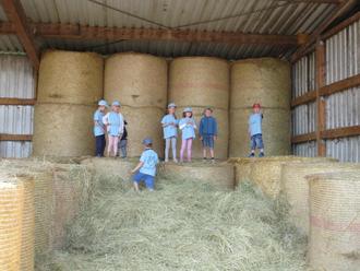 Nachdem Frühstück schauten wir uns noch verschiedenes Korn an und jeder durfte mal in die Schüsseln greifen und fühlen. Dann ging es endlich ins Heu.