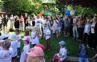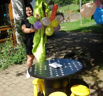 Am Nachmittag wurden die energiegeladenen Kinder von ihren Erzieherinnen vor der Kindergartentür mit einem Spalier herzlich empfangen. Trotz der zahlreichen Aktivitäten im Kletterwald waren die Kinder noch voller Tatendrang. Nach einer kurzen Pause, in der sich alle stärken konnten, ging es weiter auf den Kindergartenspielplatz, der festlich mit bunten Fahnen und Luftballons dekoriert war.