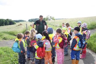 Am 08.06.22 trafen sich die Schukis wieder mit dem Förster Willms im Wienauer Wald. Die Schukis waren gut ausgerüstet. In Matschhose und Gummistiefel gekleidet und mit dem Rucksack auf dem Rücken ging es in Richtung Wald. Dort wartete schon Herr Willms auf uns.