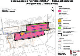 Der Ortsgemeinderat der Ortsgemeinde Großmaischeid hat am 03.05.2023 in öffentlicher Sitzung den Bebauungsplan „Burwiesenstraße“ gemäß § 10 (1) des Baugesetzbuches (BauGB) vom 03. November 2017 (BGBl. I S. 3634), in Verbindung mit § 24 der Gemeindeordnung für Rheinland-Pfalz (GemO) vom 31. Januar 1994 (GVBl. S. 153), jeweils in der derzeit gültigen Fassung, in all seinen Bestandteilen als Satzung beschlossen.