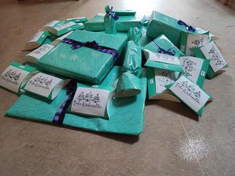 Ruckzuck ging es zurück in die Gruppen. Gespannt wurden die Geschenke begutachtet. Es gab größere und kleinere.