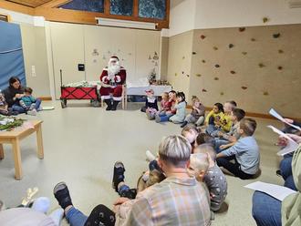 Zur Nikolausfeier besuchte uns der Nikolaus, nachdem wir in den Gruppen gemeinsam gefrühstückt hatten, hat er die Socken der Kinder gefüllt mitgebracht und diese den Gruppen zum Verteilen überreicht.