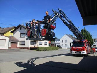 Das Beste am Feuerwehrbesuch war, dass die Kinder mit der Drehleiter fahren durften. Wer sich traute, durfte 30 Meter hoch fahren. Von da oben hatte man eine tolle Aussicht und alles andere sah sehr winzig aus.
