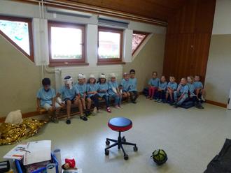 Es wurden verschiedene Bespiele besprochen wie die Kinder helfen könne z. B. Hilfe holen, bei einem Verletzten bleiben bis Hilfe da ist oder eben auch die 112 anrufen.