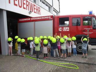 Sie üben am Telefon einen richtigen Notruf abzusetzen, bekommen die Schutzkleidung gezeigt, die Fahrzeuge erklärt und dürfen sogar mit dem Wasserschlauch spritzen. Fast so wie die echte Feuerwehr. In diesem Jahr hatten aber nicht nur die Kinder das Vergnügen, sondern auch wir Erzieherinnen wurden erneut zu Brandschutzhelfern ausgebildet.