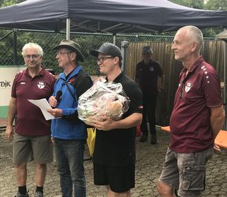 Mario Kovacs bei der Siegerehrung. Christoph Witzmann musste bereits die Heimreise antreten und konnte den Präsentkorbe nicht mit entgegennehmen.