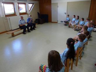 Die Polizistinnen spielten uns ein Stück von Ben und Lotta vor. In dem Theaterstück ging es darum, wie man sich richtig im Straßenverkehr verhält und man sich immer an Absprachen halten muss.
