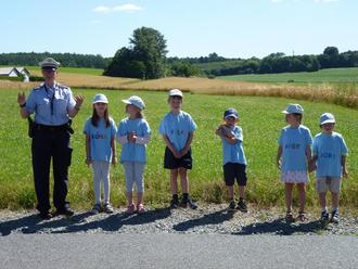 Zum Abschluss ging es in zwei Gruppen mit Kerstin raus aus der Kita zum Fußgängertraining. Dort haben wir an der Straße geübt wie wir diese sicher und zügig überqueren. Und wie wir uns als Fußgänger richtig im Straßenverkehr verhalten müssen.