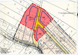 Der Geltungsbereich der Bebauungsplanänderung ist in dem nachfolgend abgebildeten Bebauungsplanentwurf (unmaßstäblich) durch eine rot unterbrochene Linie gekennzeichnet.