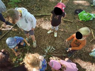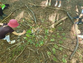 Nach einer kleinen Wanderung und einem gemeinsamen Picknick auf dem „Waldsofa“ konnten es manch einer kaum abwarten aus den gesammelten Naturmaterialien ein großes Mandala zu legen.