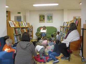 Drinnen empfing uns “Lisa”. Sie führte uns durch das Museum in einen Raum, in dem alles nur vom Rotkäppchen handelte und in die Bibliothek mit 30000 Bilderbücher, die sich die Kinder anschauen durften. Für einige war es allerdings gar nicht so einfach, ein Buch zu nehmen und 29999 stehen zu lassen. Als Lisa uns dann das Bilderbuch “Königin der Farben" vorgelesen hat, verfolgten die Kinder mucksmäuschenstill die Geschichte.