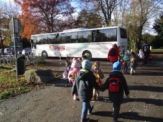 Am Mittwoch, den 22.11. durften die 4- und 5-jährigen, die im nächsten Jahr noch nicht in die Schule kommen, auf große Fahrt gehen. Wir besuchten das Bilderbuchmuseum in der Burg Wissem in Troisdorf. Möglich wurde diese Fahrt durch die großzügige Spende von Christian Frey vom Hilfsprojekt “Freywillig mit Herz", der die Buskosten und dem Förderverein der Kindergärten, der die Museumskosten übernahm. Diese Busfahrt war schon das erste Abenteuer. Was man da so alles sieht und winken die LKW Fahrer zurück? Schnell war die Stunde um und wir vor der Burg.