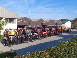 Gleich acht Drehleitern samt Besatzung trafen sich an der Feuerwache in Ransbach-Baumbach zum vierten Drehleiterstammtisch.