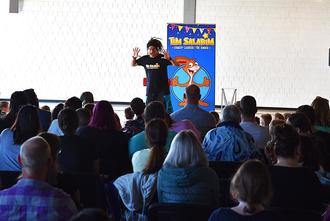 Nach dem Lied der Kinder, sorgte Tim Salabim mit seiner Zaubershow für große Augen, ungläubiges Staunen und jede Menge Lachen. Tim Salabim war ein nicht ganz so perfekter Zauberer, einiges ging ganz zum Vergnügen aller schief.