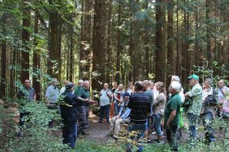 Bestes Spätsommerwetter begleitete Mitglieder und Freunde des KWBV zur großen Lehrfahrt am 19. September 2024. Nach einem ausgiebigen Frühstück im „Eisbachs-Garten“ in Ransbach-Baum-bach ging es zu einer Exkursion in den Staatswald von Altendiez (ca. 700 ha) und hier genau in die „Fremdländer-Abteilung“ (ca. 4 ha). Bereits Mitte des 18. Jahrhunderts fing man in Deutschland an, eingeführte, fremdartige Baumarten forstlich anzubauen. In Altendiez beschäftigte man sich erstmals Ende des 19. Jahrhunderts mit dem sog. Fremdländer-Anbau und man stand in dieser Zeit im engen Austausch mit der Preußischen Forschungsanstalt Eberswalde. Der ehemalige Förster des Staatswaldes Günter Lenz begrüßte die Mannschaft und führte durchs Revier. Im einzelnen wurden Riesenmammut- und Tulpenbäume sowie Hemlock- und Nobilistannen, Gelbkiefer (Pinus ponde-rosa) sowie Thujabäume besichtigt. Der aktuelle Bestand ist etwa 50-60 Jahre alt; es wurden auch Weißtannen angepflanzt und den Tulpenbäumen Winterlinde beigemischt. Fazit dieser Wald-begehung: Alternative Baumarten sind dort unverzichtbar, wo sich die Standorts- und klimatischen Verhältnisse aus dem Ökogrammen heimischer Baumarten hinaus verschieben und Waldbau folglich nur mit alternativen klimatoleranten Arten möglich ist. Sie sind aber auch dort zulässig und sogar erforderlich, wo heimische Baumarten noch nicht komplett versagen, um z.B. die Rohstoff-Funktion zu gewährleisten.