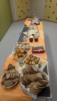 Am Tag des Frühstücks brachten die Eltern eine Vielzahl an Leckereien mit, darunter frisches Obst, Gemüse, Wurst, Käse, Marmelade sowie selbst gebackenes Brot und Muffins.
