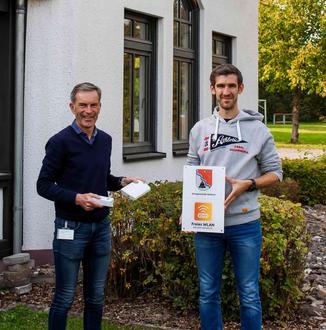 Freuen sich über den neuen WLAN-Punkt in Stebach: Ortsbürgermeister Andreas Krobb und evm-Kommunalbetreuer Norbert Rausch