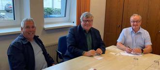 1. Kreisbeigeordneter Michael Mahlert (Mitte) besprach mit Kreis-Handwerksmeister Ralf Winn (links) und dem Innungsbeauftragten Matthias Dahmen die Pläne für gemeinsame Workshops zur Unterstützung des Handwerks.
