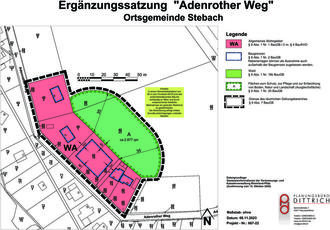 Der Ortsgemeinderat der Ortsgemeinde Stebach hat am 06.11.2023 in öffentlicher Sitzung die Ergänzungssatzung „Adenrother Weg“ gemäß § 10 (1) BauGB vom 03. November 2017 (BGBl. I S. 3634) in Verbindung mit § 24 der Gemeindeordnung für Rheinland-Pfalz (GemO) vom 31. Januar 1994 (GVBl. S. 153), jeweils in der derzeit gültigen Fassung, abschließend als Satzung beschlossen.