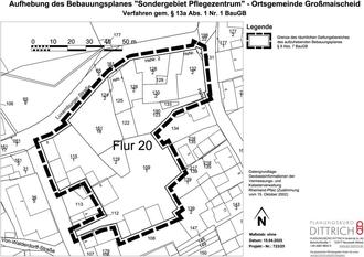 Der Ortsgemeinderat Großmaischeid hat am 27.10.2025 in öffentlicher Sitzung die Aufhebung des Bebauungsplanes „Sondergebiet Pflegezentrum“ gemäß § 10 (1) des Baugesetzbuches (BauGB) vom 03. November 2017 (BGBl. I S. 3634), in Verbindung mit § 24 der Gemeindeordnung für Rheinland-Pfalz (GemO) vom 31. Januar 1994 (GVBl. S. 153), jeweils in der derzeit gültigen Fassung, abschließend als Satzung beschlossen.