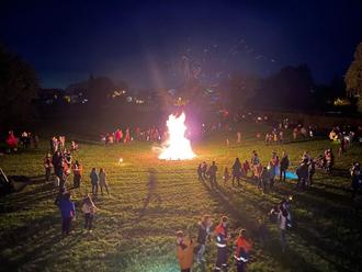 Nach dem Gottesdienst zogen alle gemeinsam mit ihren tollen Laternen durch Dierdorf, bis sie schließlich am Kindergarten ankamen. Dort wurde das große Martinsfeuer entzündet und es gab Brezeln und Getränke für Groß und Klein.
